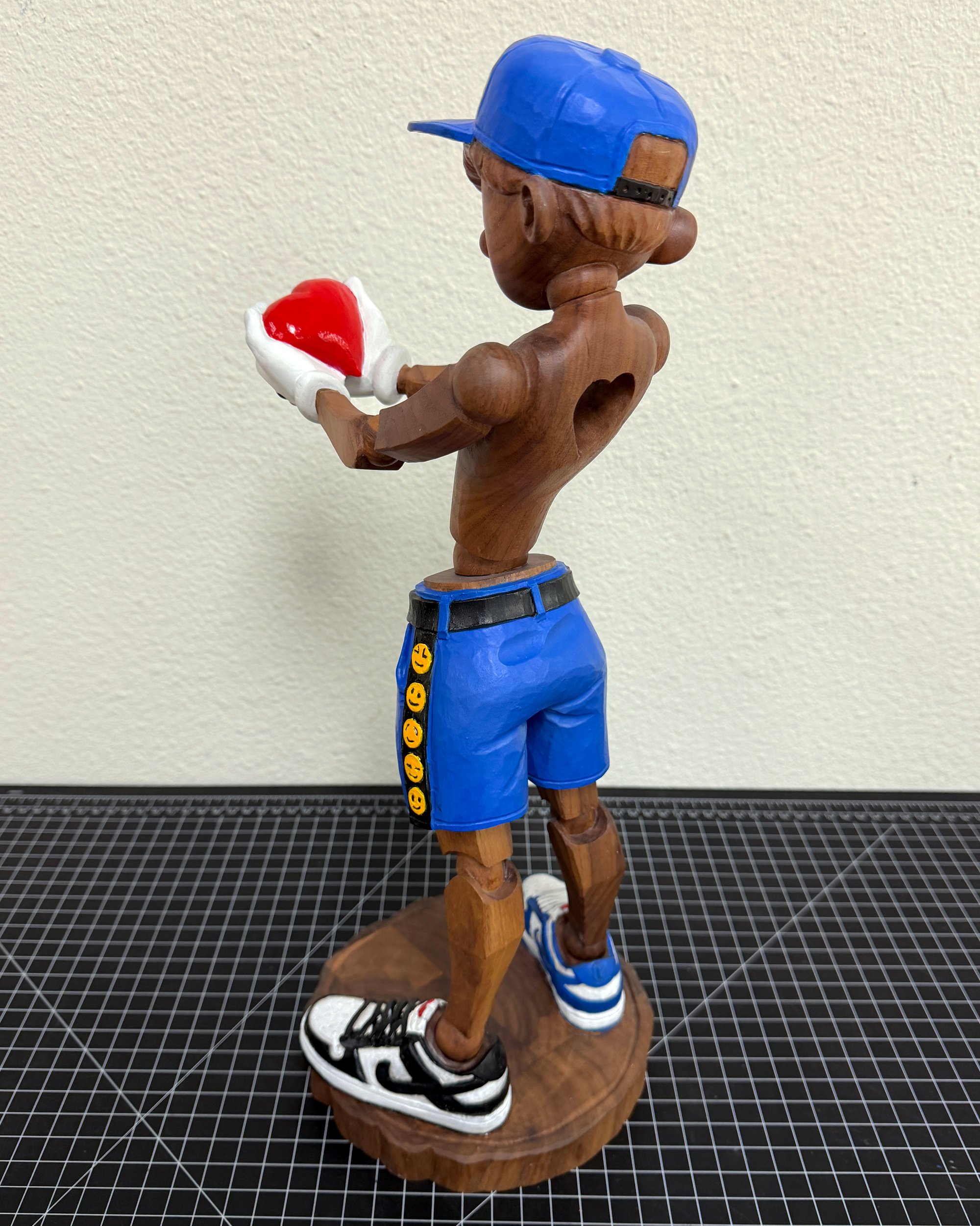 Hand carved wood sculpture. Hand painted in this unique colorway by the artist.